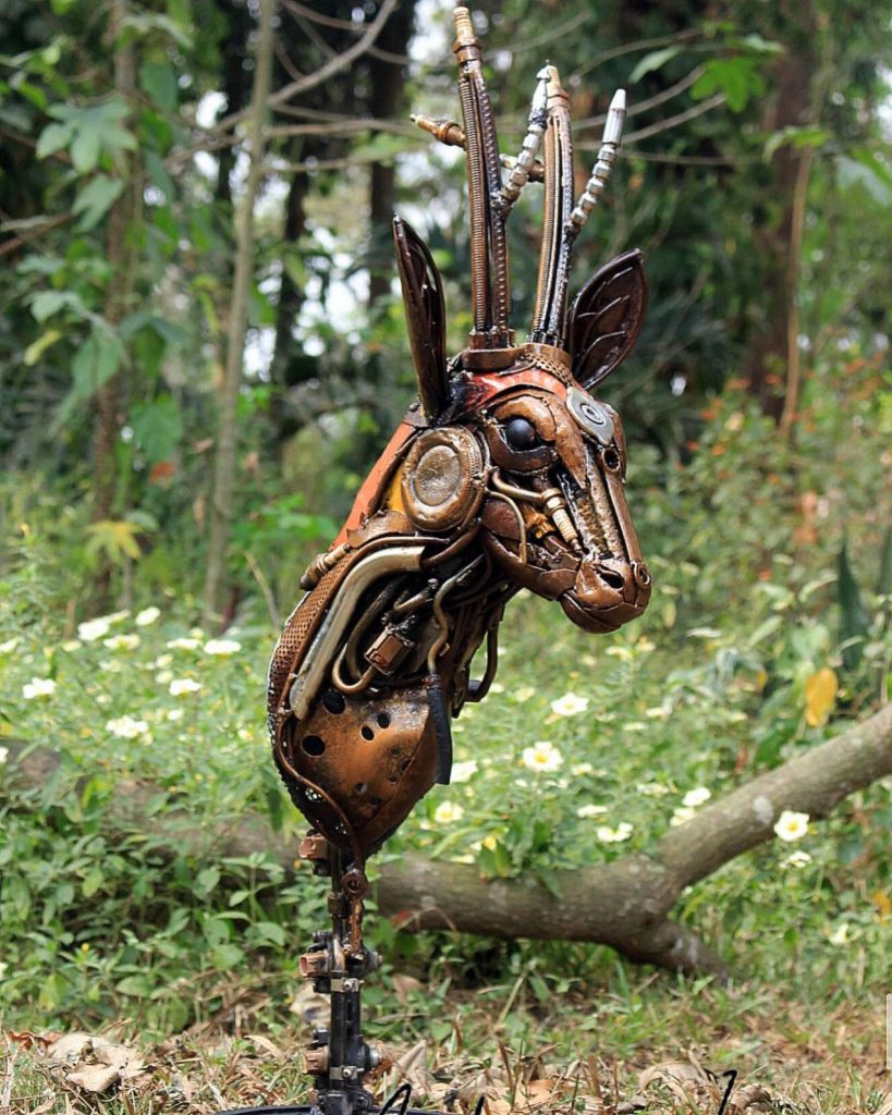 That duality defines his work. Steel is rigid, heavy and unforgiving, yet under his hands it becomes fluid, expressive and often surprisingly delicate. His sculptures range from animals to human forms and abstract structures, all unified by a sense of movement and intention.