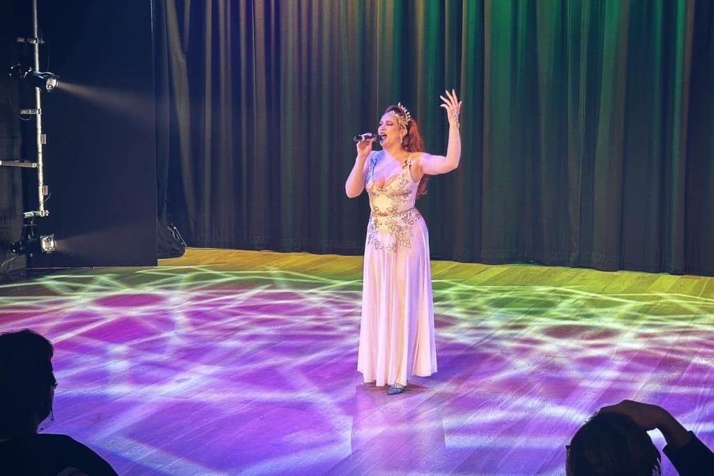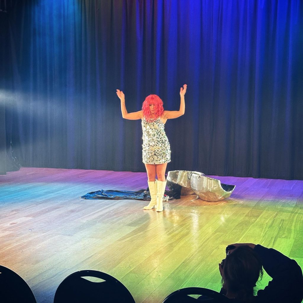 The evening opened with Sacha Le Swank, who appeared on stage as a giant shimmering disco ball. As layers peeled away to reveal her costume beneath, she danced through a euphoric medley of disco classics. It was glamorous, playful, and irresistibly fun. The audience bopped along, grinning from ear to ear, instantly warmed into the night.