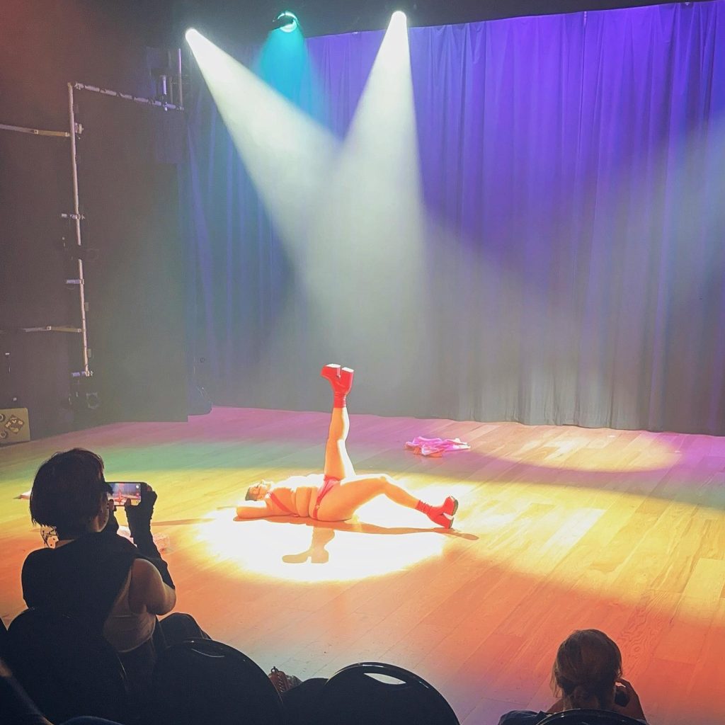 Jada Love slowed the tempo with a sultry routine to Feeling Good. Draped in a fluffy white boa, she delivered a seductive, graceful performance filled with beautiful floor work and perfectly executed splits. It was intimate, controlled, and quietly powerful, reminding the room that burlesque is as much about mood as it is about spectacle.