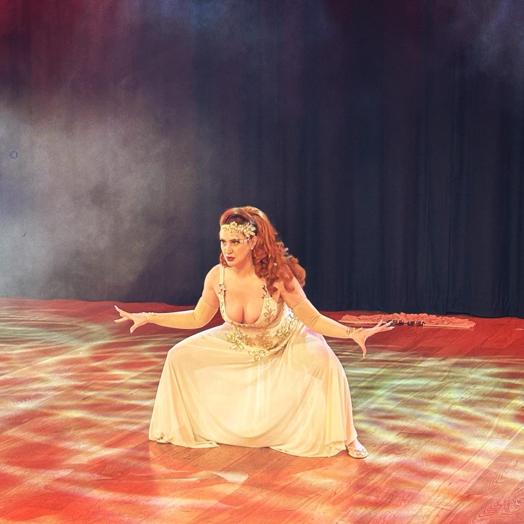 After another short break, Fleur returned with a pop culture moment that resonated deeply with the room. Paying homage to the finale buzz of Stranger Things, she danced with flowing gold and white fabric fans to a Running Up That Hill remix. The routine was energetic, hypnotic, and beautifully performed, blending nostalgia with theatrical flair.