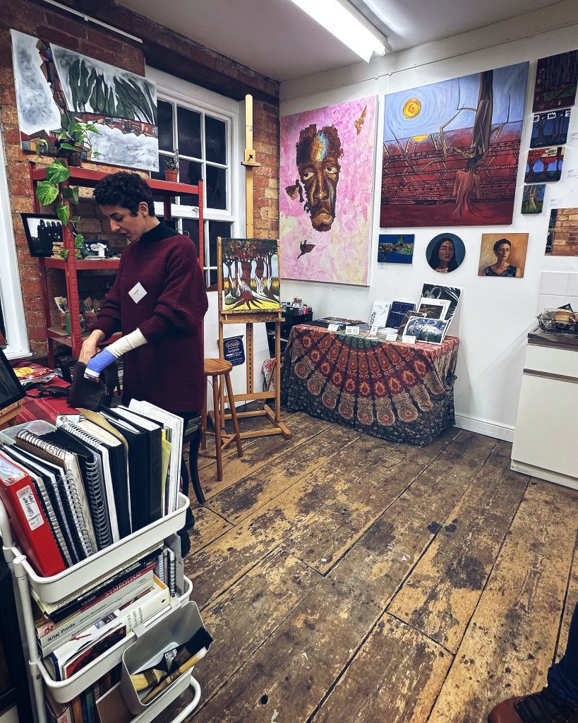 It was also brilliant to reconnect with familiar faces. I caught up with Zaza Lewis, Venus Behjati and Dani Bello – all previously featured in our Artist Focus series – and seeing them in their working environment felt like seeing their stories come full circle. Surrounded by their materials, tools and fellow artists, they were clearly in their element, thriving as part of this close-knit community.
