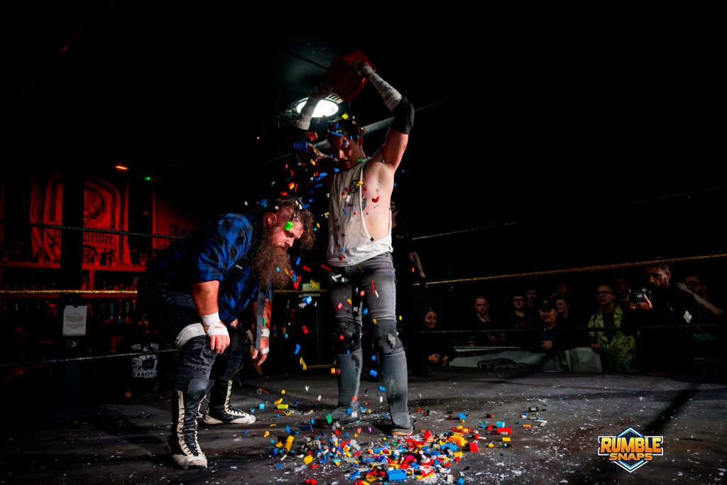 This one was as inventive as it was violent. B.A. Rose and Jack Bennett fought through glass boxes, chairs and metal frames as the crowd egged them on. Midway through, someone spotted a pile of Lego near the stage, sparking chants of “Use the Lego!”.