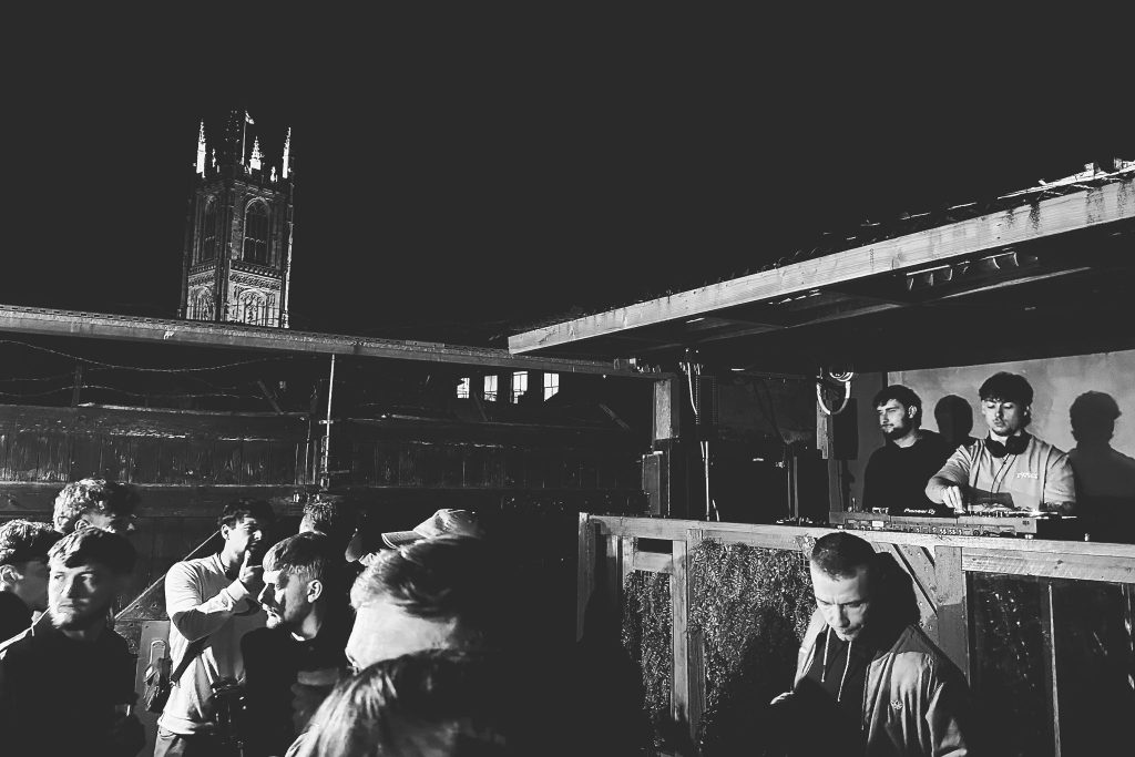 Step outside, and it was a completely different but equally electric story. Hosted by Funkyard, the terrace was rammed-a sea of people dancing under the night sky, with the silhouette of Derby Cathedral looming in the background.