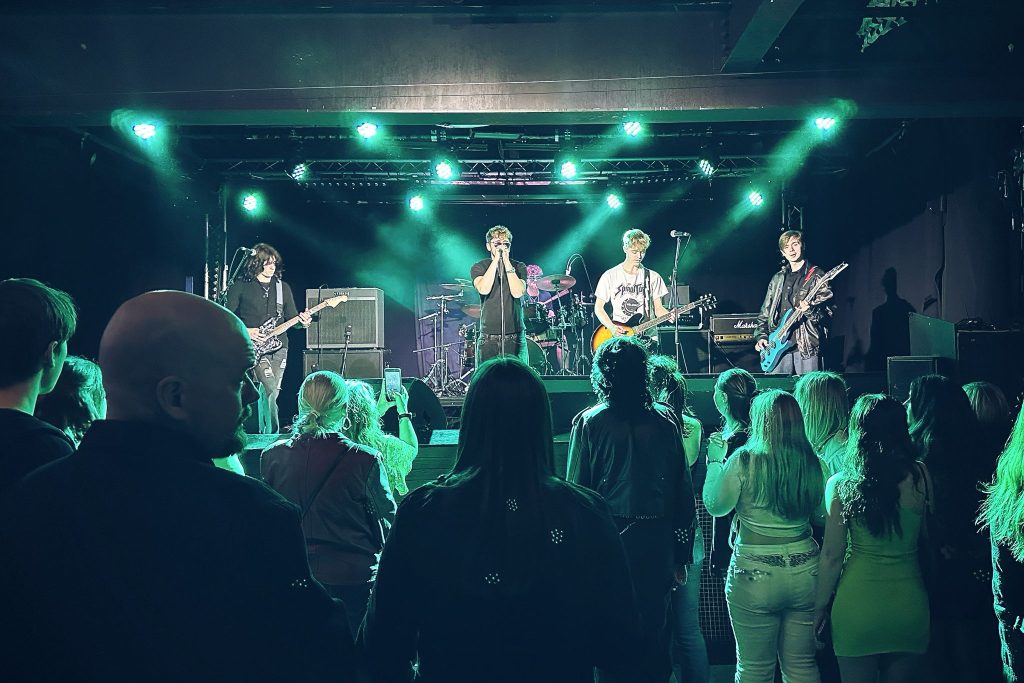 They pulled the audience closer for Centre of Attention, a choppy, indie-leaning punk track with flashes of Arctic Monkeys influence. The room responded instantly, dancing along as the groove locked in.