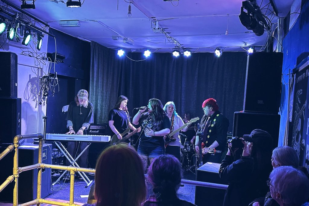 Closing the night, Recoil delivered the most expansive and theatrical set of the evening. The six-piece lineup, complete with bass, two guitars, drums, vocals and keys, created a full-bodied sound that moved between distorted pop punk, heavy rock and groove-led indie. From the start, they had the crowd engaged, clapping along and feeding off the band’s energy. The addition of keyboards added a distinct theatrical layer, elevating their sound beyond standard guitar-driven rock. Sleazy guitar licks, touches of funk and moments of classic rock and roll swagger gave their set a varied but cohesive feel. Their originals, including “Co Dependency” and “Freefall”, showcased a more soulful and slower side, with “Freefall” standing out through its heavier tone, layered synths and a memorable behind-the-head guitar solo moment. Covers played a key role too, with Fall Out Boy and Paramore tracks woven into the set. Their performance of “Still Into You” leaned into an ongoing joke about being a Paramore cover band, but it landed perfectly with the crowd. A teaser of a new track, “Show”, hinted at an even more theatrical direction, built around piano and a slower, more emotional delivery. It was a strong, well-balanced closing set that tied the night together.