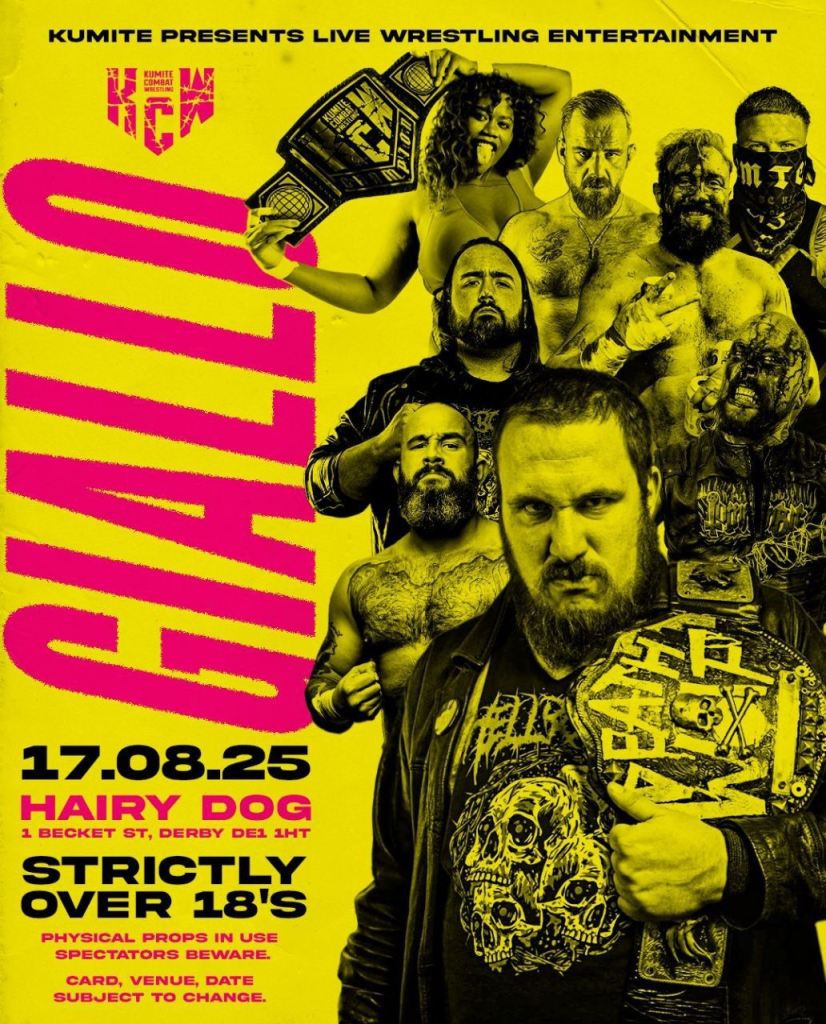 By K Futur TREИDNSETTERSThis weekend, Derby flows with two distinct streams of wrestling spectacle, one that invites families and casual fans into an electric, ring-side carnival of athletic theatre at the Market Hall, followed by an afternoon descent into hardcore, adult-only combat at The Hairy Dog that promises danger, drama, and raw, unsanitized wrestling energy.